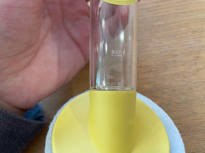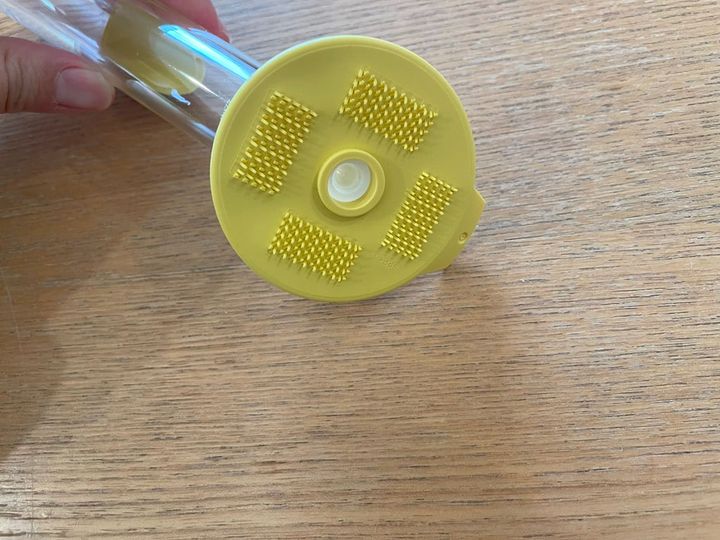 右側の黄色いパーツが、洗剤を入れる柄の部分のフタになります。