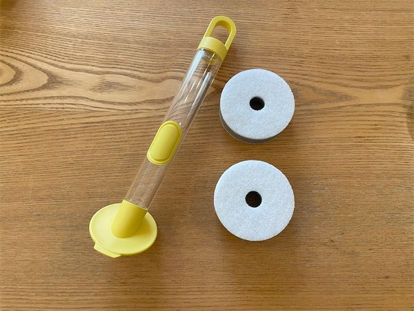大きめのお皿やフライパンはこちらのディスペンサー付きスポンジを使って、グラスや小さめのお皿、お箸などのカトラリーは、一般的なスポンジを使用するというように使い分けてもいいかもしれませんね。