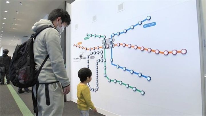 体験コーナーでは、運転レバーを操作して地下鉄の模型を走らせると、車載カメラの映像が映し出されます。