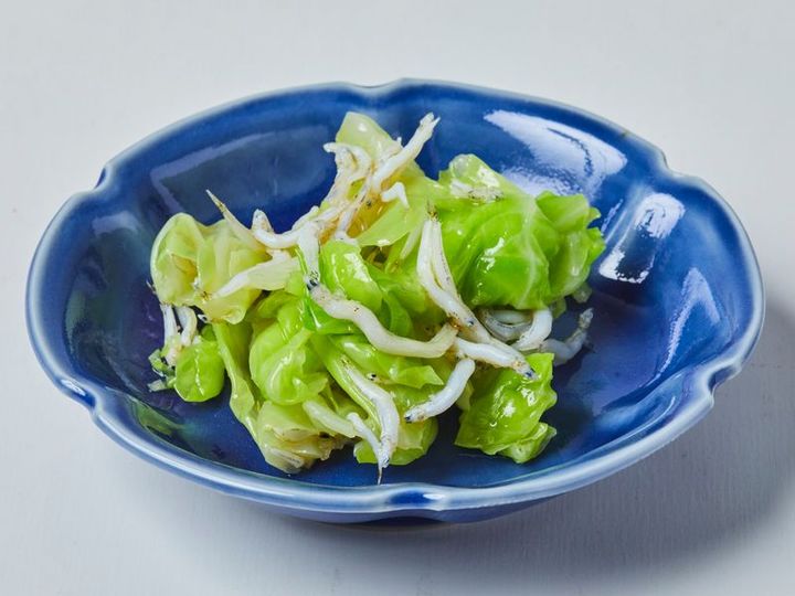 小鍋に湯を沸かし、塩ひとつまみを加えてキャベツをさっとゆでる。しんなりしたら冷水にとってさまし、しっかりと水けを絞る。ボールに入れ、しらす干しと、ごま油小さじ1、塩適宜を加えてよく混ぜる。