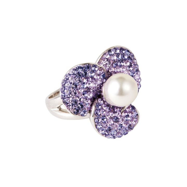 ラベンダーカラーのビジューにひと粒のパールをあしらったデザイン。¥6,300(アビステ)