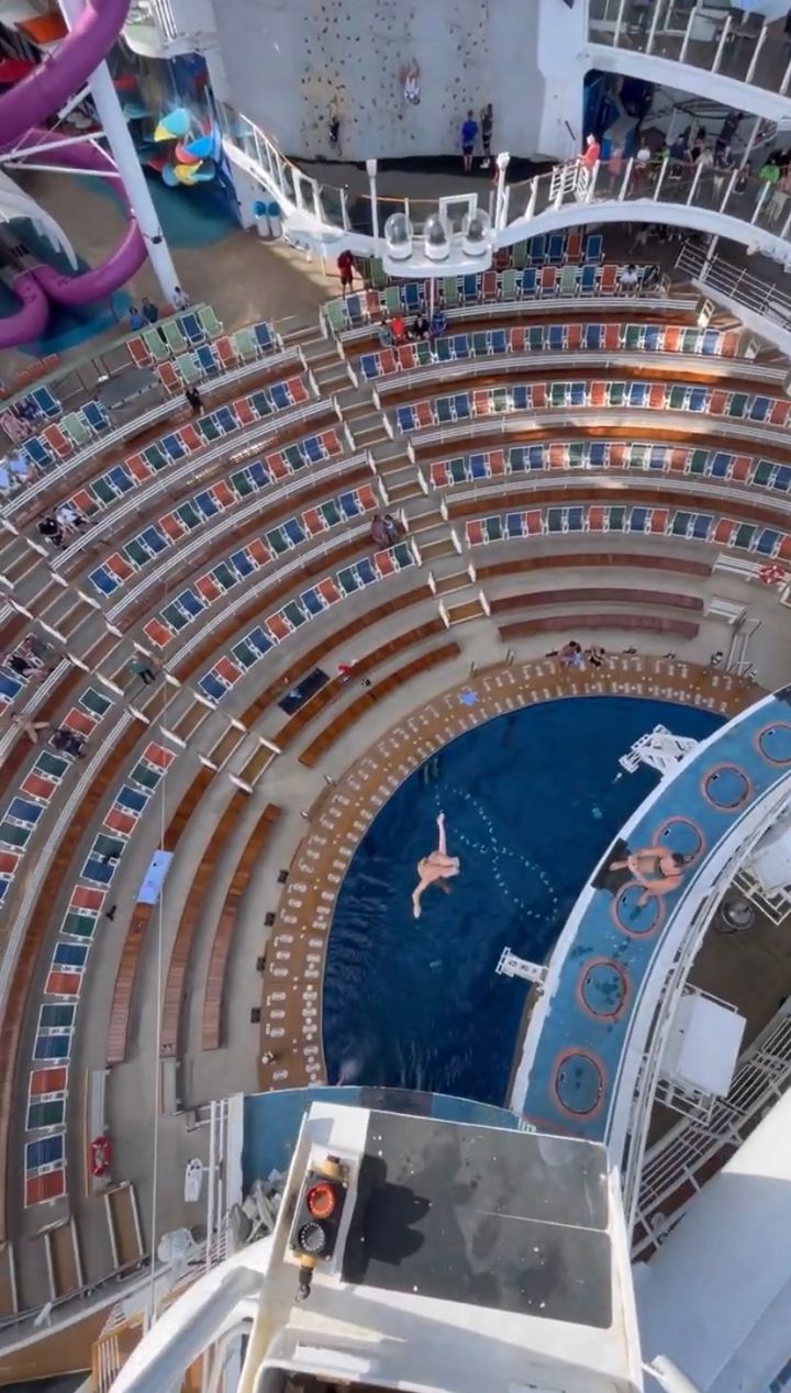 3. 豪華客船にダイビングプールが!?まさかの設備で女性が華麗なダイブ!!