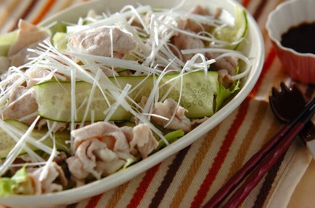 豚ロース肉をゆでる時の調味料が味を左右する、ゆでポーク。豚ロース肉を茹でる際に、酒やネギ、ショウガに花椒を使います。合わせダレはニンニクを効かせて。ご飯すすむ味わい。