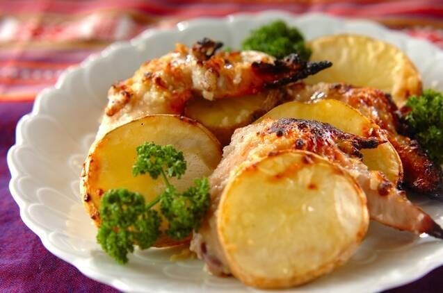 手羽先を塩麹と花椒で風味豊かに焼き上げました。具材を並べてオーブンにお任せなので便利。漬けダレはふき取らず、そのまま焼いてジャガイモにも味を移しましょう。