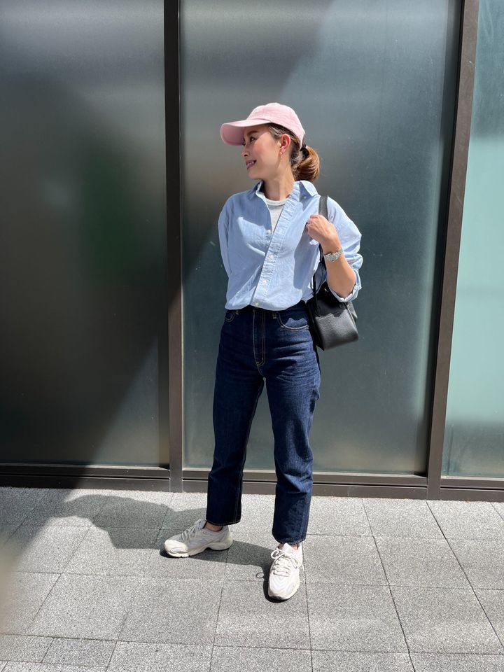 「運動会コーデの定番・スニーカーはemmiで購入したニューバランスの725を選びました。親子競技も多いスクールなので、クッション性があって動きやすいハイテクスニーカーにして正解でした。子どもたちのユニフォームがネイビーなので、それに合わせて私も服は上下青系に。室内開催なので帽子は不要なのですが、スポーティな雰囲気を出したくてキャップをかぶりました」内田小百合さん・36歳(主婦/5歳男の子と3歳女の子ママ)
