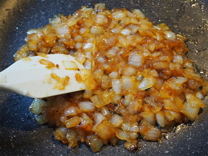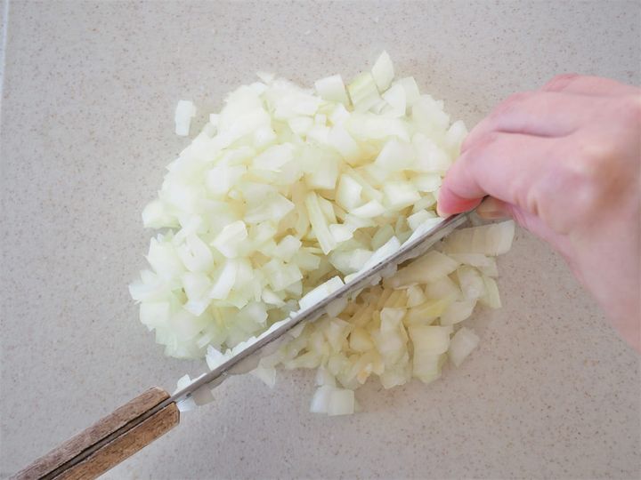 1.  玉ねぎをみじん切りにする。