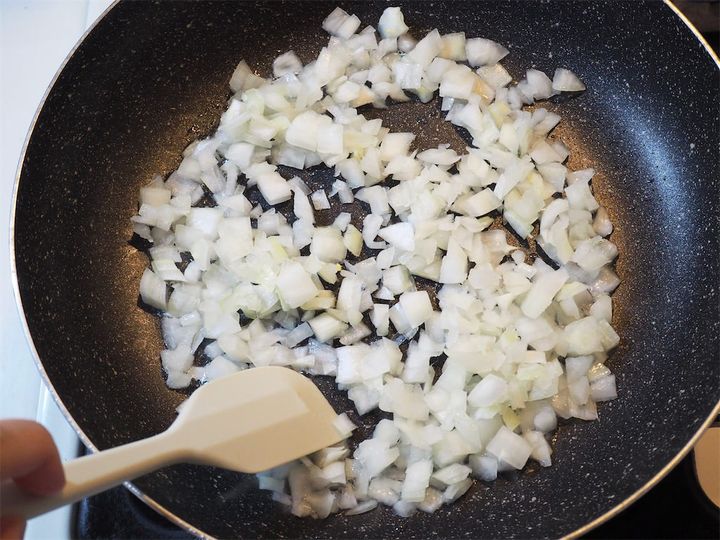 4.  フライパンに油を引き、玉ねぎがしんなりするまで炒める。