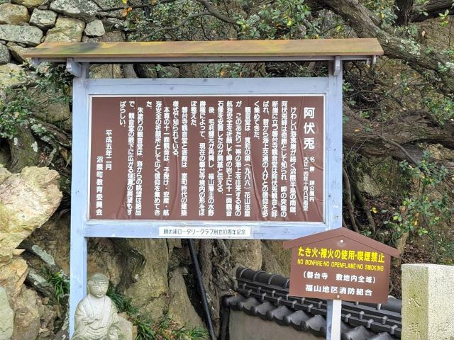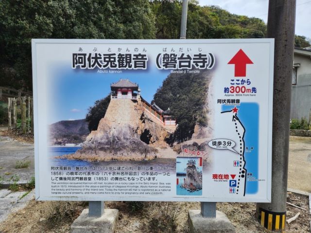 実は、上の写真に写っている看板がある駐車場よりも奥に進めば、もっと阿伏兎観音に近い場所があります。ただ、5台ぐらいしか駐車スペースがなく、向かう道中は車1台が通行できる幅しかありません。