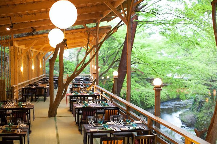 川床京会席ランチが付いた宿泊プランでは、同じリゾート内に夏季限定でオープンする「渓涼床」で京都の夏の風物詩・納涼床を体験できます。