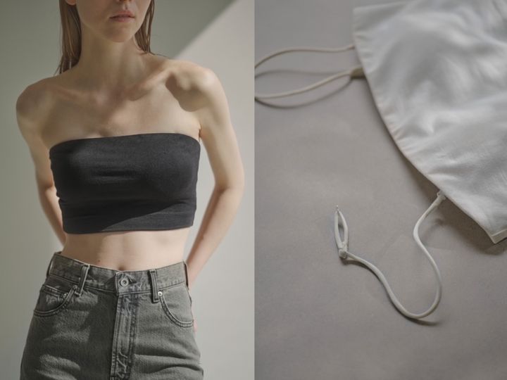 心地よさとファッション性を叶えたスタイルを提案するブランド、ヨー ビオトープ。“見えても美しい”を目指して作られたブラトップは、インナーには珍しい細番手のスーピマコットンを度詰めで編んだこだわりの素材を使用。フロントはシンプルに、バックにはヴィンテージのランジェリーからヒントを得たという太めのゴムバンドディテールを採用。スタイリッシュなバンドゥをお探しなら迷わずこちらを。