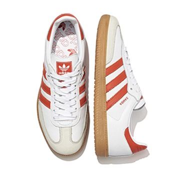 赤ラインスニーカー 15,400円/adidas(アディダスお客様窓口) 白のボディに映える、オレンジがかった赤のラインが印象的。ソールにはベージュを採用し、色のコントラストをバランスよく中和。
