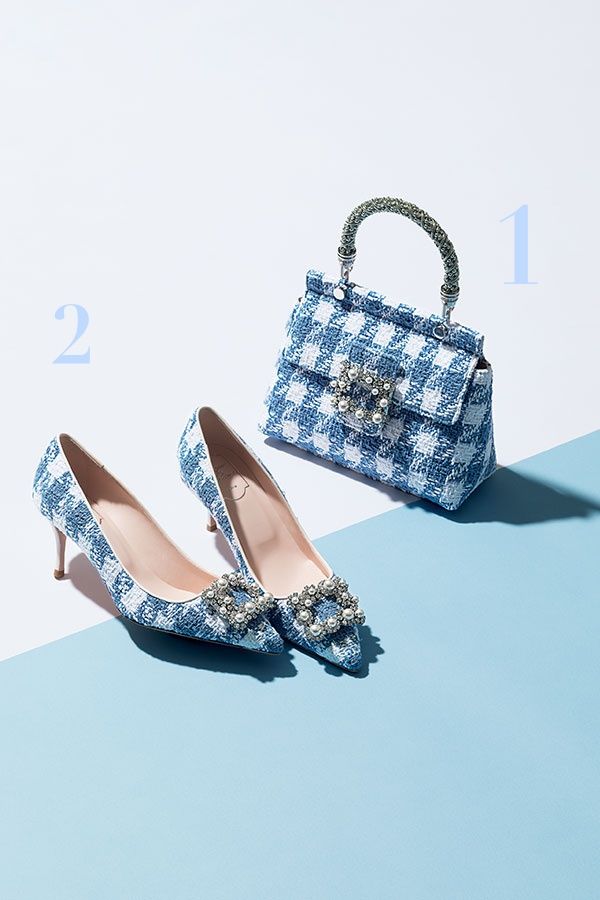 アラサー女性におすすめしたいハイブランドアイテムをお届け! ラグジュアリーなデザインでレディを魅了するロジェ ヴィヴィエの新作からブルー×ホワイトのヴィシーチェック柄がさわやかなバッグ&パンプスをピックアップ。白い光を放つジュエルバックルがみずみずしくきらめくクリーンな華やぎは、これからの季節にひときわ羨望を浴びるはず。