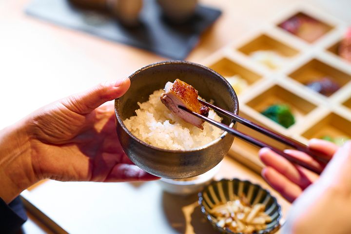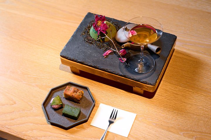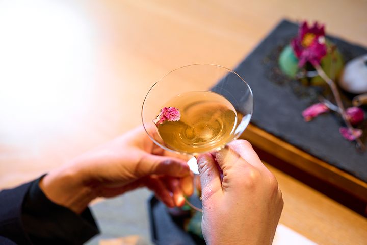 ご飯のお供に何を選ぼうかと、自分の好きな組み合わせを見つけるのも楽しい。各タイミングで出てくる3種類のお茶のだしやお花の香りを、ゆっくりと香るのもいいですね。ひとりだからこそフルに五感を使いながら、余すところなくコースを楽しむことができますよ。