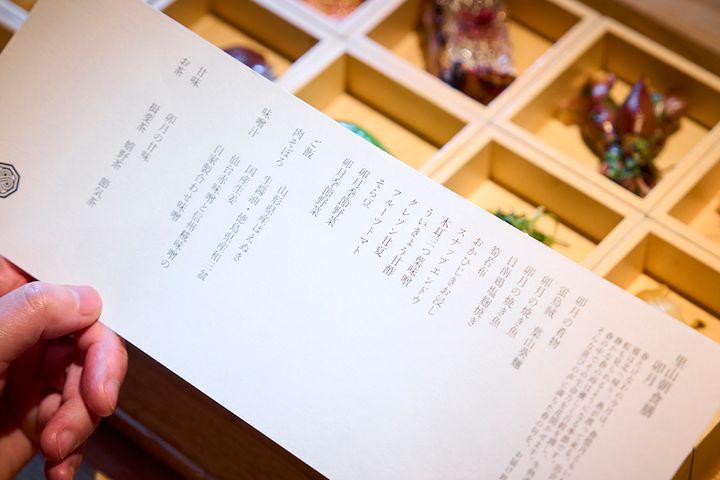 着席したら、既に料理のお品書きが置かれていました。まるで旅館での朝食みたい! 旅気分で胸が高鳴ります。取材時は、春の旬を存分に感じられる「卯月」のメニューでした。