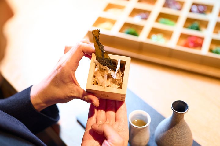 お茶のだしとなっている鰹や昆布も一緒に配膳されます。使っている食材を目で見てもらいたいという、お店の思いです。