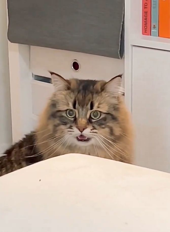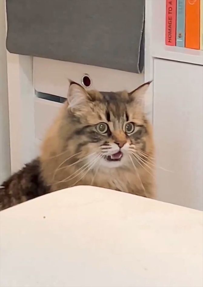 いったい何に気づいてしまったのか・・。あんぐりとしたネコが話題に!「サスペンスドラマのあの音楽をつけたい」