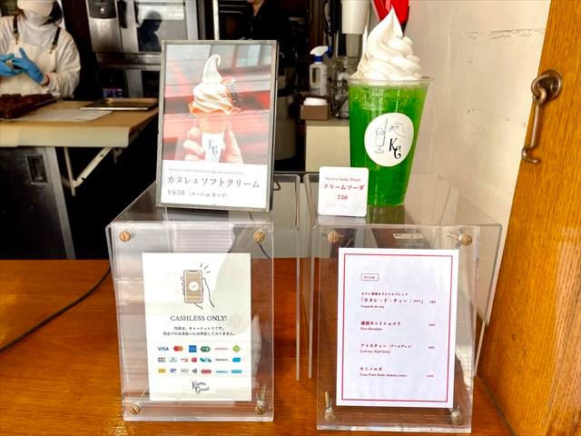 焼きたてカヌレ以外にも"カヌレ専用"のオリジナルブレンドティー「カヌレ・ド・ティー」(税込480円)や、クリームソーダ(税込750円)、ユズのソーダ「キミノユズ」(税込600円)といったドリンクメニューも。取材日にはホットショコラが販売されていましたが、2024の夏に向けては、抹茶アイスラテ(税込650円)が入れ替わりで登場するそうです。