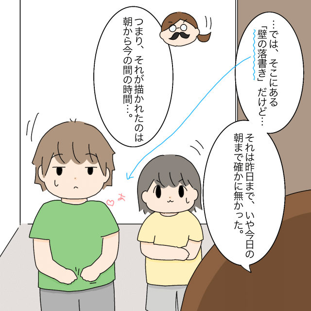 壁の落書き・・犯人は誰だ!?名乗り出てほしいママ探偵・・苦しい言い訳の姉妹に弟がズバリ