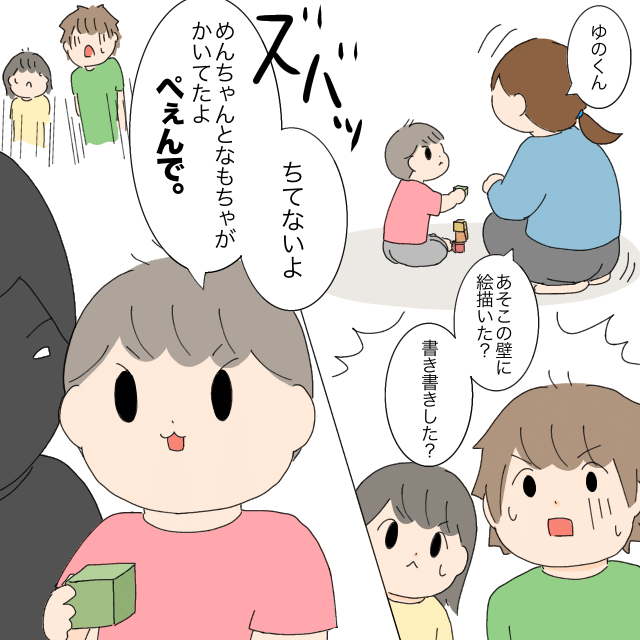3. 壁の落書き・・犯人は誰だ!?名乗り出てほしいママ探偵・・苦しい言い訳の姉妹に弟がズバリ|めめの育児絵日記