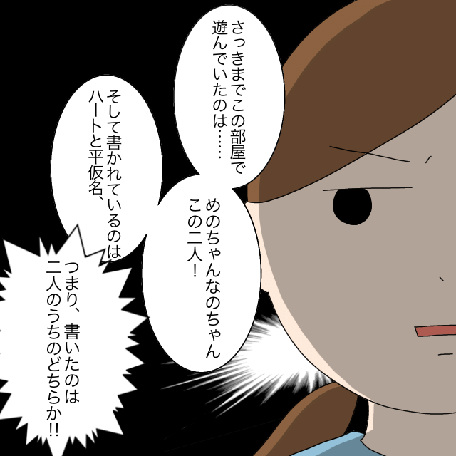 でもほら・・・ママ的には、できれば、書いた人が自分から名乗り出て、ごめんなさいをする展開を望んでいるわけで。(私もそんなに怒りたくないので)