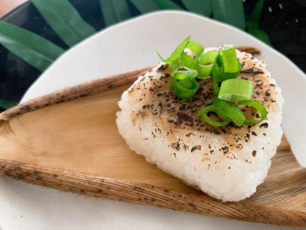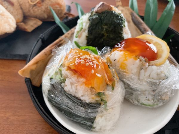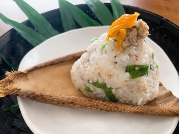 少し冷ましたごはんに焼いたアジと南予の麦味噌をすりあわせたものと薬味を混ぜ込んで握る。少し水分量が多いのでしっかり握ると崩れにくい。