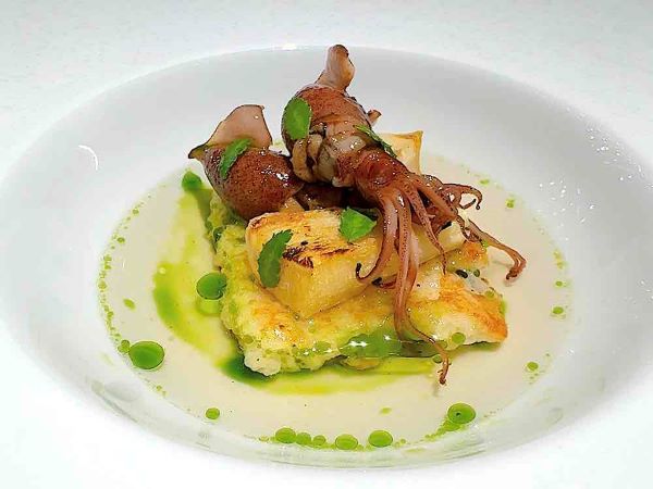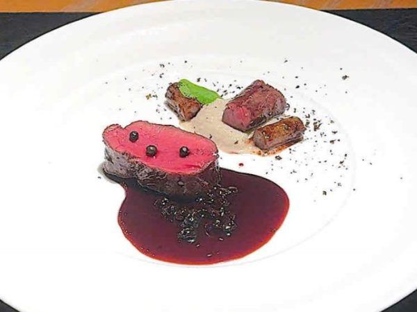 モモ肉がとても柔らかいのに牛肉の質感をしっかりと感じます。山わさびと黒ニンニクのソースが肉の甘みを引き立てとてもおいしいです。