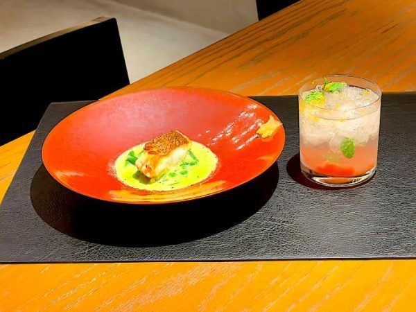 一品ひとしな、シェフが心を込めてつくるお料理はどれも繊細で美しくとてもおいしいです。フリードリンクは、アルコール、自家製ノンアルコールのペアリングも楽しめます。 お料理にリンクしたカクテルがとても綺麗です。