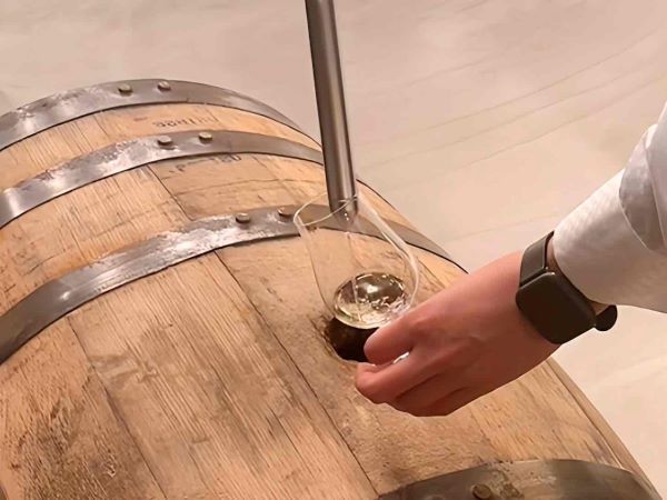 樽出しのウィスキーは煌めくような透明感が美しいです。飲むことはできますが、アルコール度数がとても高いです。口に含むと少しとがった感じで、フルーティーな余韻が残ります。