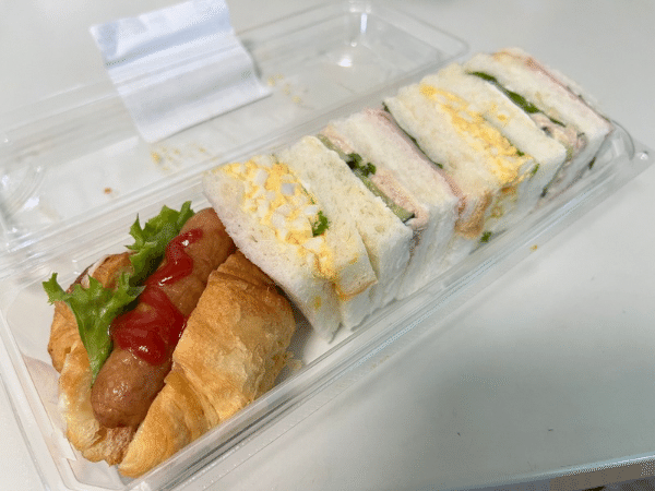こちらは、レディースサンド(356円)です。色々な種類のサンドイッチが楽しめるし、一口サイズなので食べやすいです。
