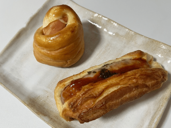 こちらは、別日に買った惣菜パンたち。左は「ハムロール(86円)」、右は「ポークプランククロワッサン(248円)」。ハムロール、学生の頃から大好きなんですよね。