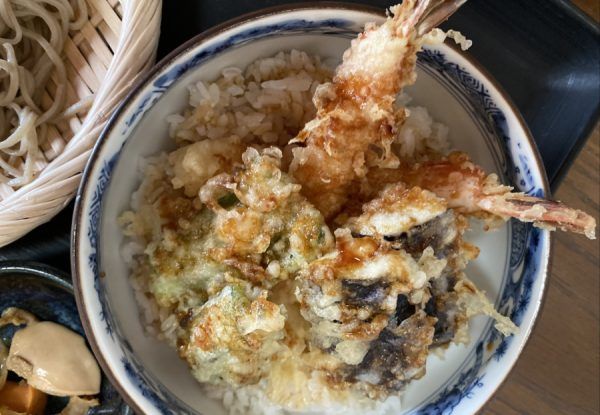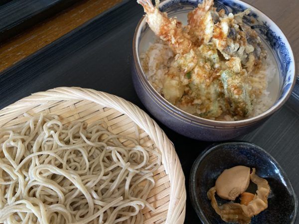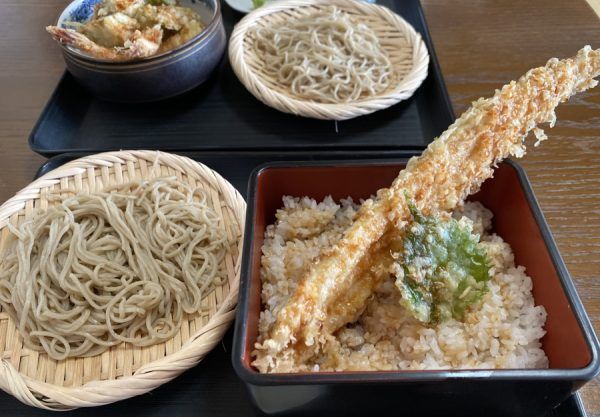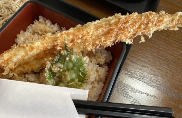 食べまくりの旅の途中、もりそばで おそばの味を堪能!と思ってきたものの…おすすめの穴子天重セット(1,250円)に。