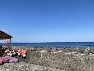 駐車場から海岸線の眺めも気持ちよく♪函館方面戻るのもいいですが、日本ハムファイターズ伊藤大海選手の出身地、鹿部町、間欠泉や七飯町、大沼経由とまた違ったルートドライブも良きですね。 私はこの後、遺跡散策で食後の運動からの温泉ルートでした。