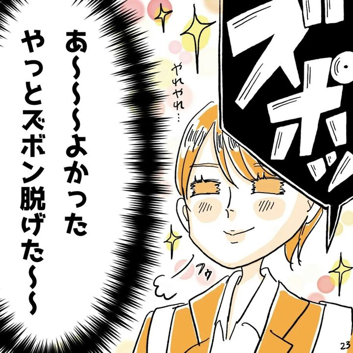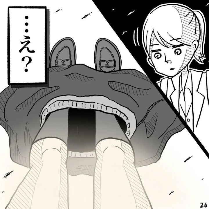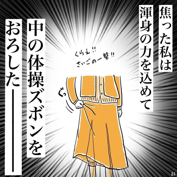 イゴ カオリさんも制服の下にジャージを着て、防寒とスカート生活を成り立たせていたわけですが、「いつもの慣れ」から駅での着がえも大丈夫、と思ってしまったのでしょう。まさか駅でスカートが落ちてしまうとは思いもよらないこと。イゴ カオリさん視点ではスカートが落ちたことは他の人に見られてないようですが…?
