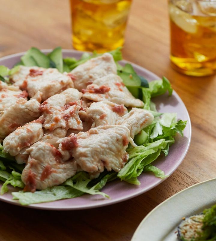 たたいて薄くのばした鶏胸肉がしっとり柔らかく、低カロリーながら満足感のある仕上がりに。梅肉のさわやかな酸味で、蒸し暑い日もさっぱり食べられますよ~♪