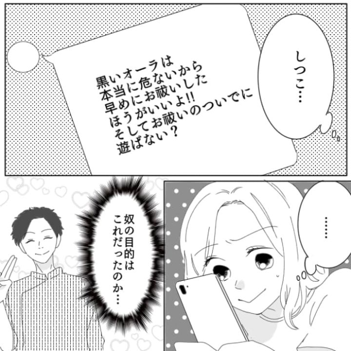先輩は主人公の気を引き、遊びに行く口実を作るためだけにスピリチュアルなことを言っていた模様。しかも同じ手口でいろいろな子を誘っていたなんて・・・。たとえ先輩だったとしても嫌なことはきちんと伝えることが大切ですね。