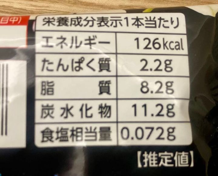 栄養成分は上記の通り。カロリーは126kcal、糖質は8.2gでした。