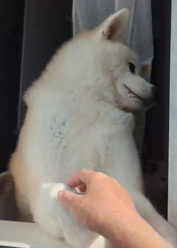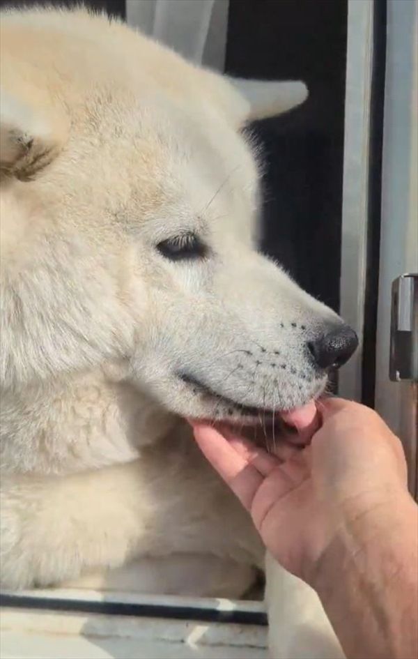 秋田犬がお出迎えしてくれたと思ったら・・。次の行動に「よし、任務完了って感じ」「無事確認!んじゃね〜」