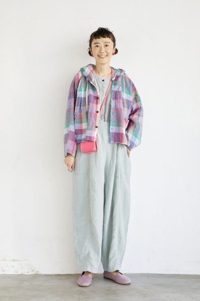 主役はカラフルなマドラスチェックのパーカ。夏フェスをイメージしました、と滝口さん。