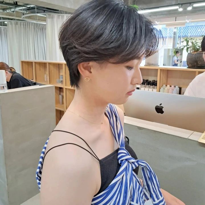 メンズっぽいクールさが特徴のハンサムショート。暗めのカラーと合わせることで、ハードな印象と女性らしさを兼ね備えたヘアスタイルになります。襟足は短めなので、くせも出にくく手入れも楽ちんです。