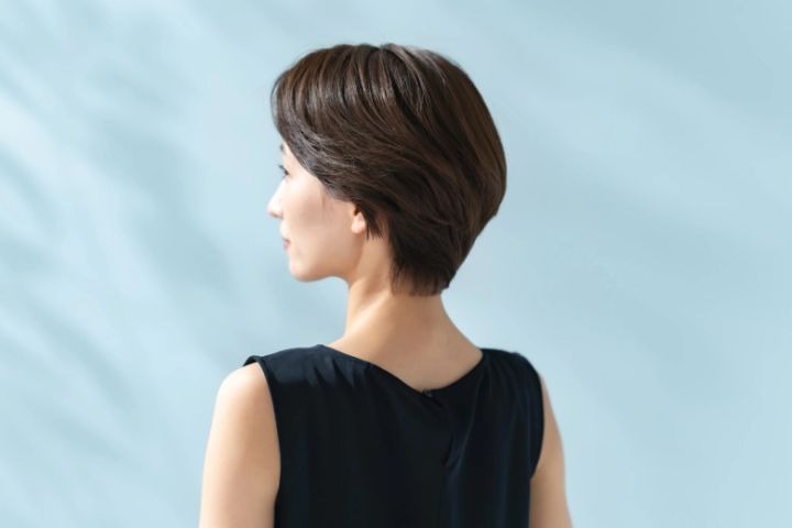 襟足は短めにカットすると、くせが出にくくスタイリングがしやすくなります。襟足が長いと強いうねりが出てきて、くびれてほしい襟元が膨らんで見えてしまいます。襟足長めのショートは避けましょう。