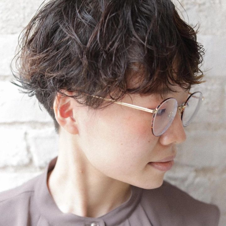 くせ毛を活かして抜け感を演出。細かな動きが追加されハンサムショートながら、フェミニンさも感じられます。襟足は短めにカットし、前髪はあえて重めにすることで全体的にコンパクトな印象を与えてくれます。