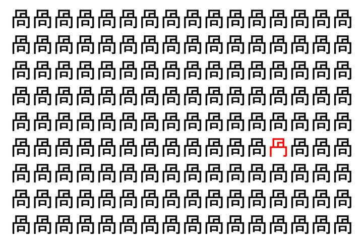 【脳トレ】「咼」の中に紛れて1つ違う文字がある!?あなたは何秒で探し出せるかな??【違う文字を探せ!】
