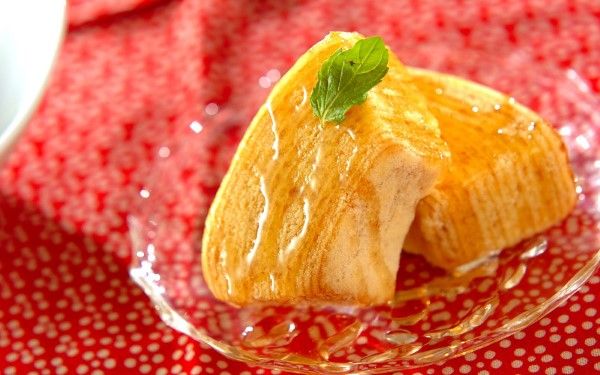 バームクーヘンにハチミツをかけるだけで、手軽にワンランクUP! しっとり感がプラスされ、上品な味わいを楽しめます。きらきらと輝いて、見た目もおしゃれですね。