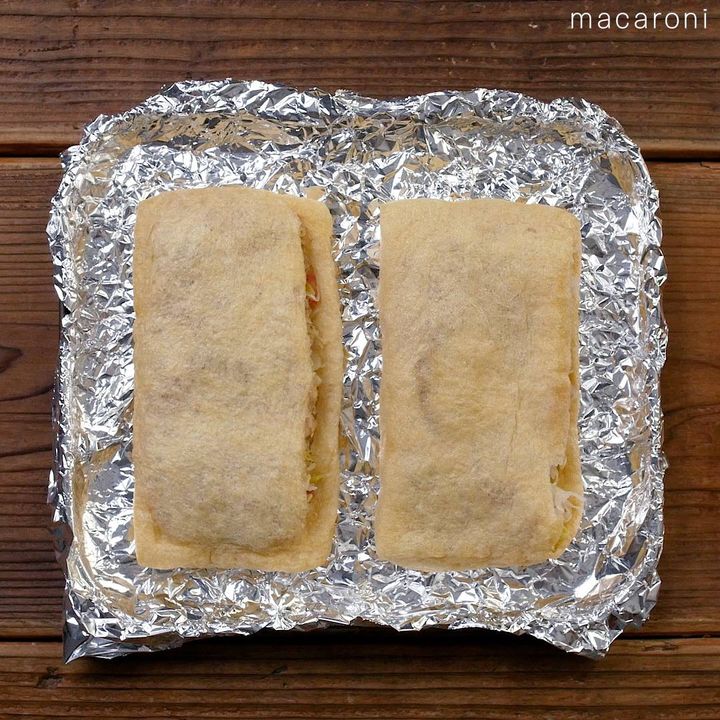 4: ②を入れ、アルミホイルを敷いた天板の上に並べます。