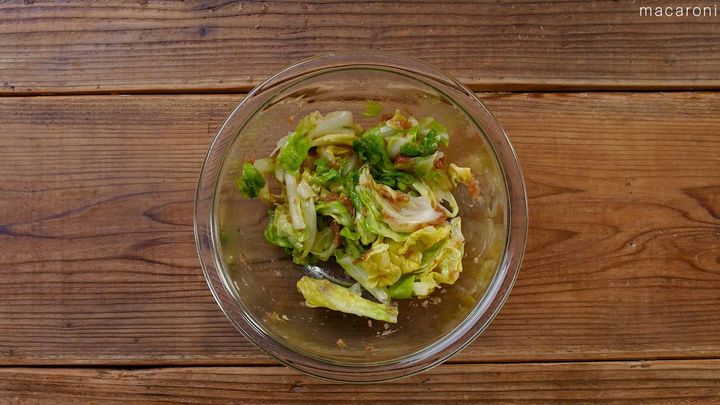 味が薄くならないよう、キャベツの水気はしっかりとふいてください。