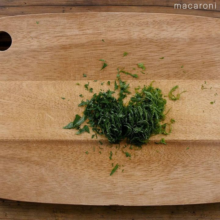 5: 皿に盛り、残りの大葉をトッピングしたら完成です。