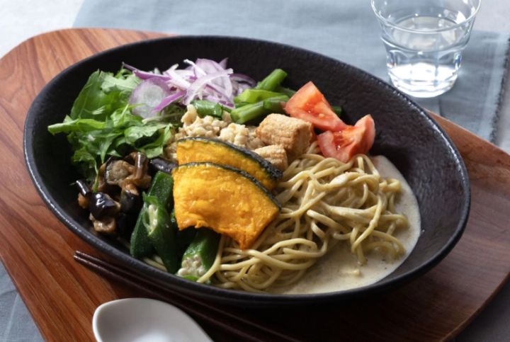 濃厚スープと自家製中華麺が絡む!冷製グリーンカレーヌードル