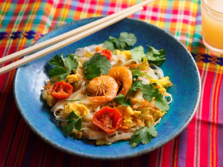 ピリ辛のソースに殻付き海老やフライドオニオンの香ばしい旨味、セミドライトマトの酸味と卵のまろやかさ、パクチーの香りが相まったバランスが抜群!辛いもの好きな人は、酸味のあるタバスコをかけて辛味を足すのもおすすめです。