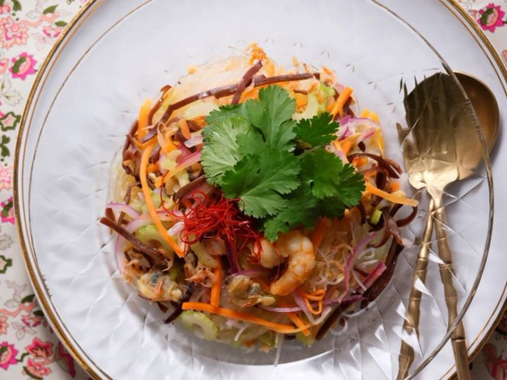 プチプチ食感が楽しい♪タイ風鶏挽肉とスーパー大麦の春雨サラダ