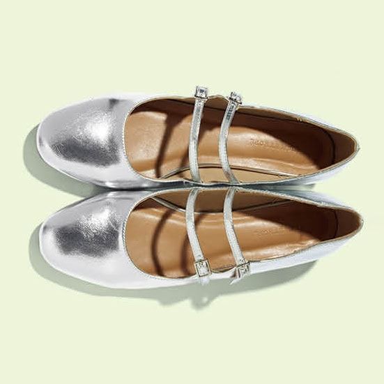 シルバーバレエシューズ[ヒール1.5㎝]¥97,900(フランチェスコ ルッソ/ロンハーマン)